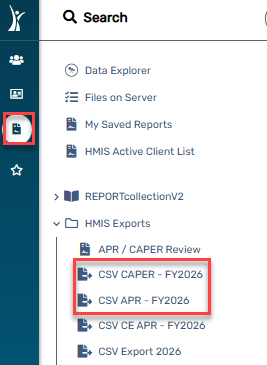 - Click on either the APR or CAPER in the HMIS Exports folder in the Report Workspace.