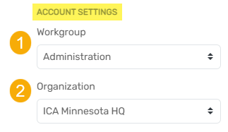 Account Settings: this is where you set your Workgroup & Organization. For more, check out: How to choose a workgroup and organization.