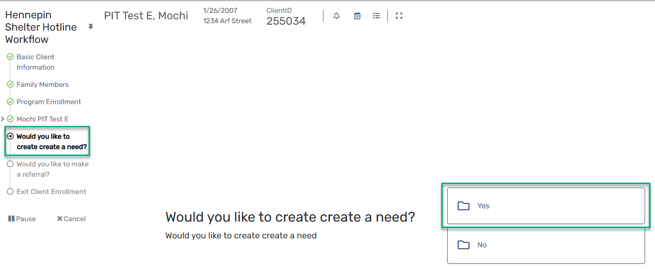 - Verify the Shelter Need appears in the client’s record.
