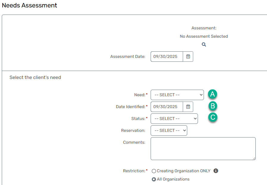 - Go to the Client Workspace. Open the Needs Assessment from the Favorites Menu.