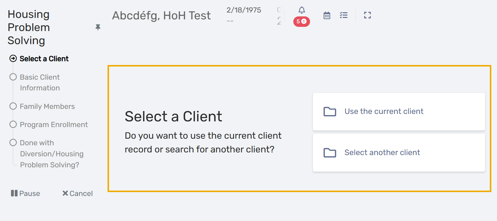 ⚠️The Housing Needs assessment can only be accessed through the Housing Problem Solving exit workflow.