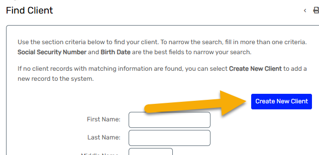 If you cannot find your client after a thorough search, select Create new client and follow the prompts