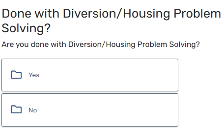 The last form of the workflow will ask "Are you done with Diversion/Housing Problem Solving?".