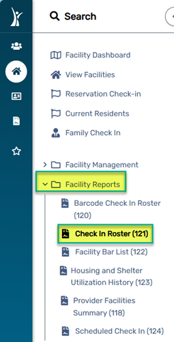 This article shows you how to review clients who are checked into a shelter by running the Check-in Roster Report for today or for a past date.