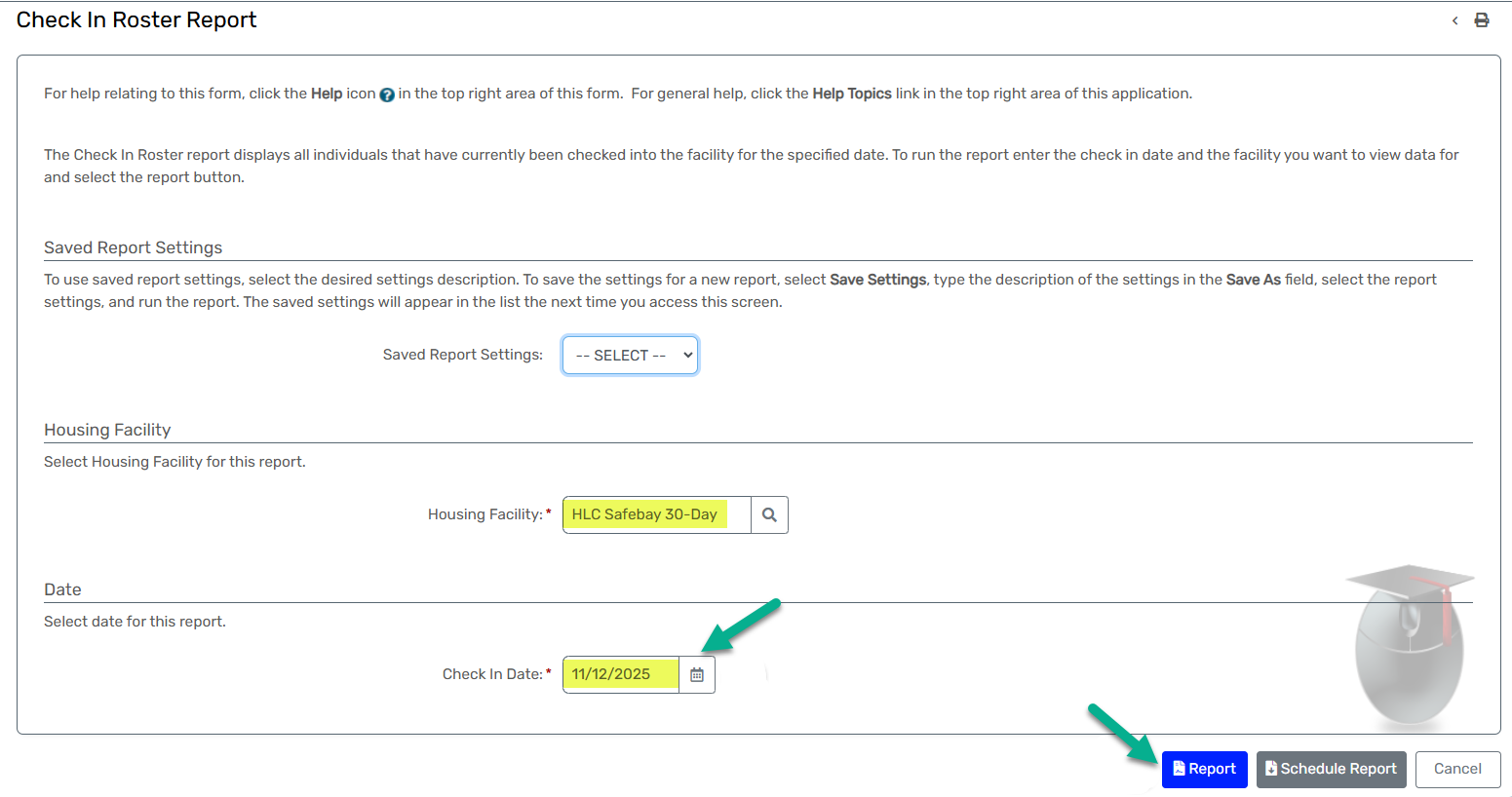 - click on the Check-in Roster Report from the Facility Reports folder.