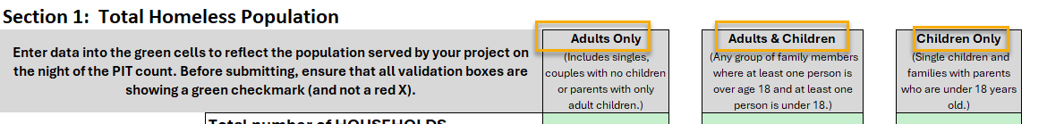 - The data is grouped by household type. Only fill out the sections for the household type(s) your program served on the PIT count night.